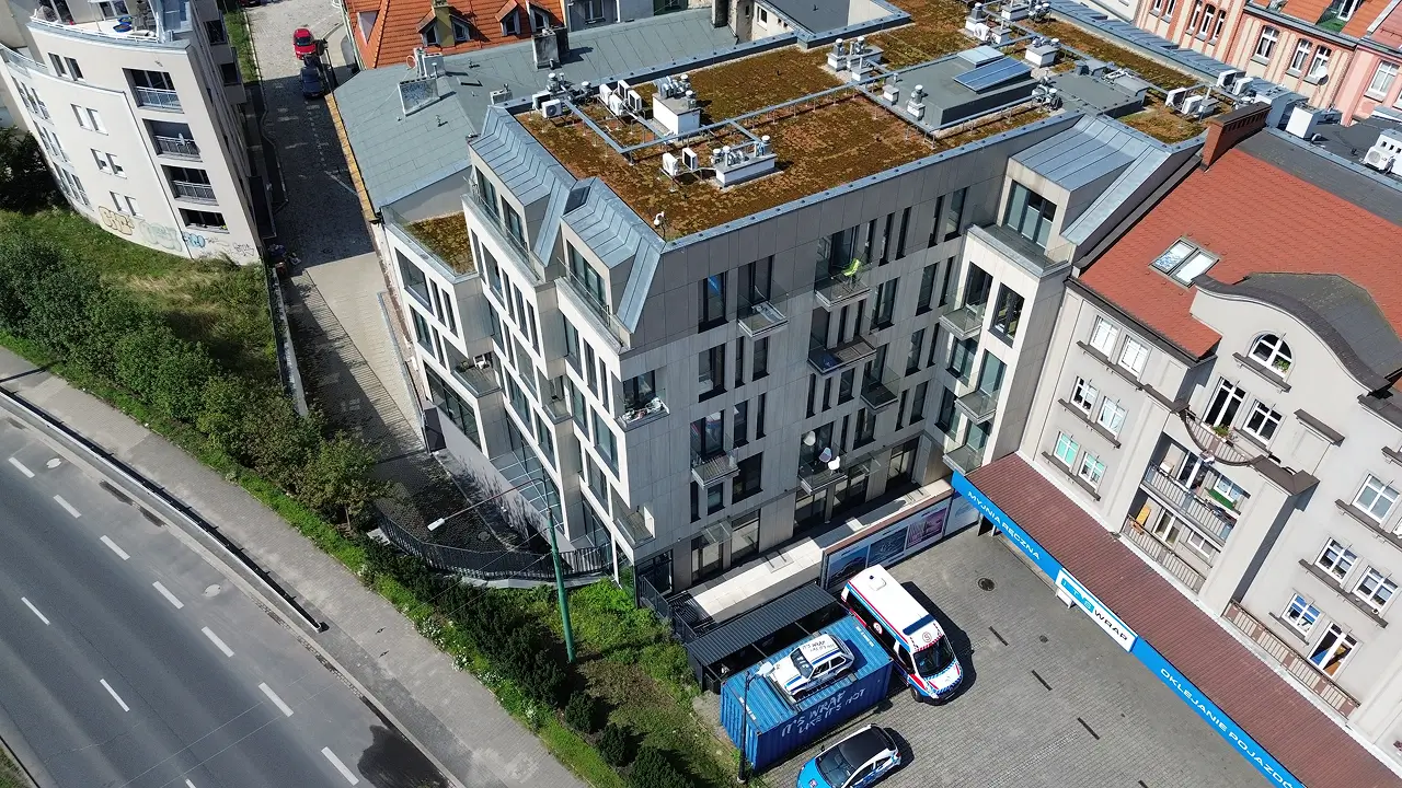 Budynek wielorodzinny z lokalami usługowymi i garażem podziemnym zrealizowany przez Grupę Bartkowiak to nowoczesna inwestycja mieszkaniowa zlokalizowana w zabytkowej części poznańskiej Śródki. Projekt o powierzchni użytkowej mieszkań ok. 2 500 m² powstał na trudnym, historycznym terenie, co wymagało wcześniejszego przeprowadzenia nadzorowanych prac archeologicznych.